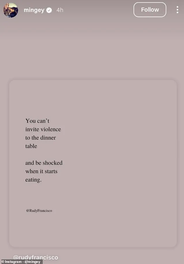 Five days after the tragedy, Seyfried, 39, appeared to draw a connection between rhetoric and violence in a post that read: ‘You can’t invite violence to the dinner table and be shocked when it starts eating.’ The line, which she reshared on her Instagram Story, was accompanied by a separate text post where she described Kirk as ‘hateful.’ The juxtaposition of these statements has left many questioning her intent, with some viewing it as a critique of incendiary rhetoric and others perceiving it as an inconsiderate remark about a deceased individual.