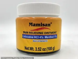 Mamisan, which has a yellow label stating it contains 4% lidocaine, was sold nationwide between April 2024 and October 2025.