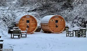 Priced at £39.95 for an hour, the private Finnish sauna includes a cold plunge pool and outdoor shower. ‘It’s perfect for couples or solo travelers who want to feel truly immersed in the landscape,’ said the sauna’s manager, Tom.