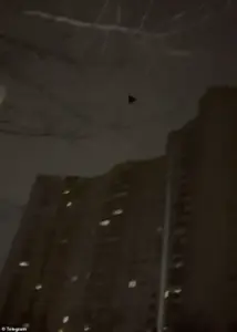 Footage captured the moment a Russian drone streaked through the sky before striking a high-rise apartment block, sending a thunderous explosion rippling through the neighborhood.