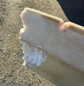 I didn’t realize it was Tommy.’ The shark, unseen by Civik until the last moment, struck with a force that not only dislodged the surfer but also took half of his board with it, leaving him stranded 150 feet from shore. ‘I was unbelievably lucky,’ Civik later said. ‘My board took all the impact, and the teeth just grazed me.’