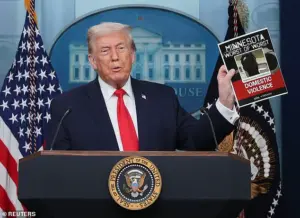 This move has further intensified the political fray, with Trump holding up posters of 24 convicted criminals from Minnesota—apprehended under Biden’s administration—as evidence of his claims that ‘they are not charges.