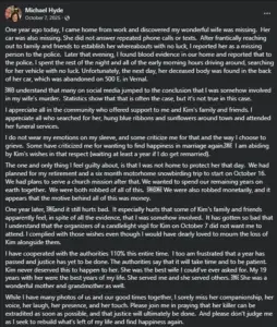 In a post that sparked both support and outrage, he claimed he had waited a year to honor his late wife’s wishes, while also addressing the scrutiny he faced from the small community where the murder had occurred. ‘I do not wear my emotions on my sleeve, and some criticize me for that and the way I choose to grieve,’ he wrote. ‘Some have criticized me for wanting to find happiness in marriage again.