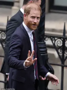 The Duke of Sussex, Prince Harry, was also present, offering a moment of comfort to Hurley’s son by placing his hand on his back as the actress visibly struggled during her evidence.