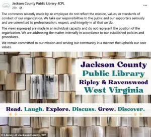 The Jackson County Public Library addressed the situation on social media