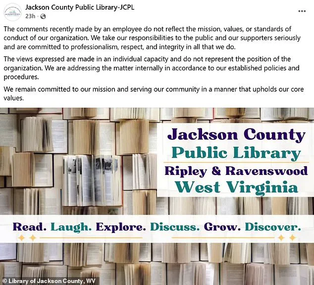 The Jackson County Public Library, where Morrow worked, issued a statement distancing itself from her actions, stating that her comments did not reflect the organization’s values.
