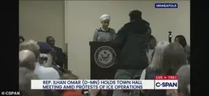 The incident, which occurred during Omar’s first town hall since the fatal ICE shootings of Alex Pretti and Renee Good in Minneapolis, has reignited scrutiny over the congresswoman.