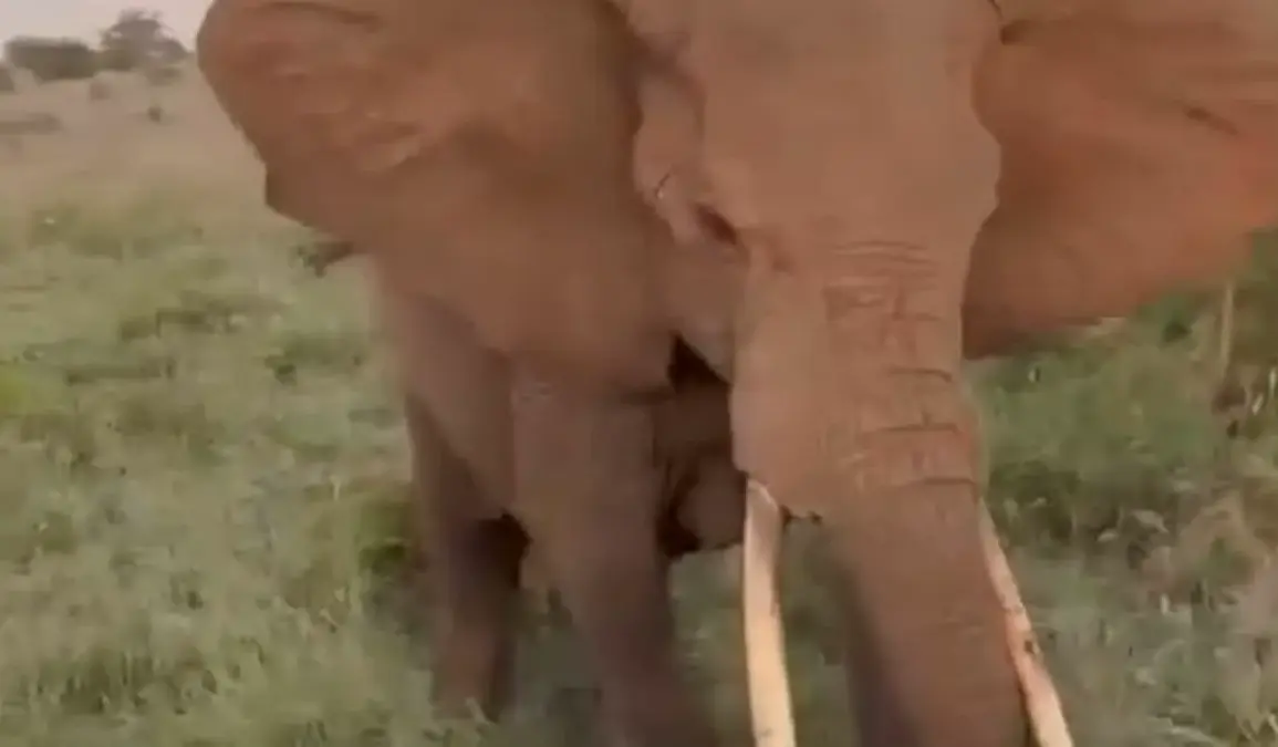 The scene inside the safari truck is one of carefree joy—British tourists laugh and point at the distant elephant, their camera phones capturing the moment. The animal stands calmly, a few meters away, its massive frame a reminder of the untamed wilderness they came to experience. But that peace shatters in an instant. Without warning, the elephant surges forward, its thunderous footsteps shaking the ground. Screams erupt as the vehicle is struck with bone-rattling force. The truck lurches violently, glass shards exploding across the cabin as panic takes hold.