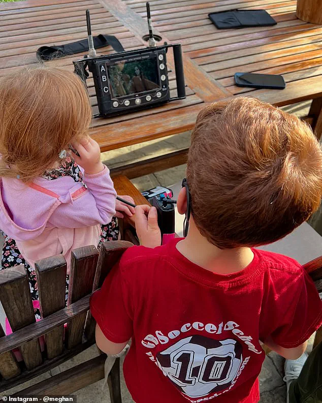 The photos, taken during a behind-the-scenes look at the production of the series, show Archie holding up a clapperboard and watching camera operations with his four-year-old sister, Lilibet.